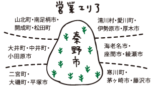 村上の仕事は、秦野を中心にしており、車で一時間以内(高速を除く)のエリアに限定させていただいております。遠方では打ち合わせが不十分になりやすく、また十分な現場管理や素早いアフターメンテ対応が難しくなってきます。